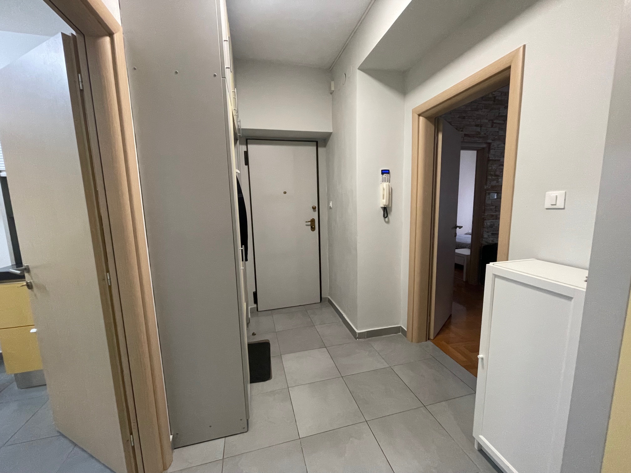 Sastoji se od ulaznog prostora, kupaonice, kuhinje, balkona te tri sobe.