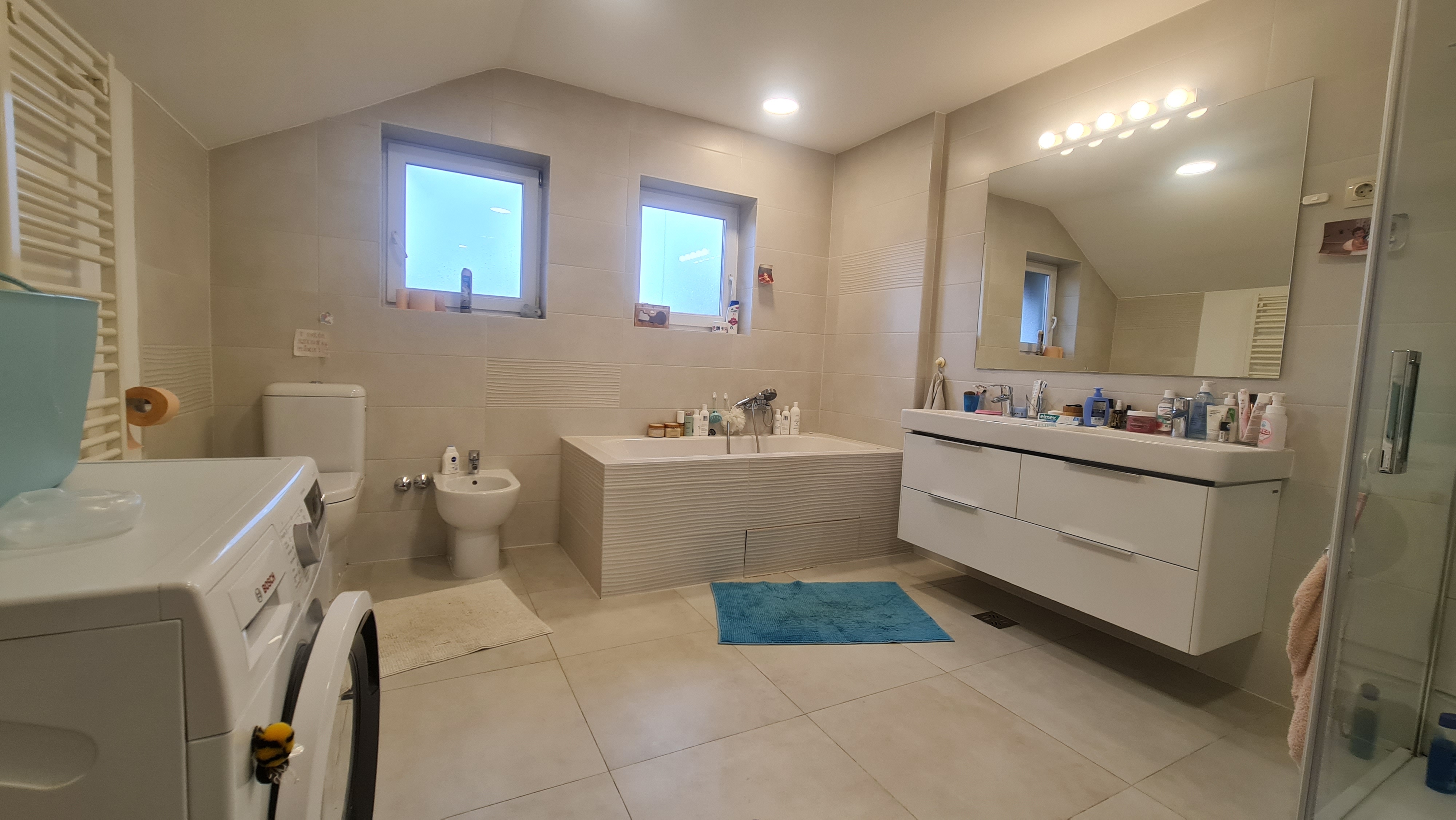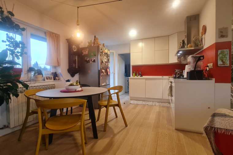 Stan pov 110 m2 na I. katu sastoji se od ulazne galerije, dnevne sobe s kuhinjom i prostorom za blagovanje, dva balkona, glavne spavaće sobe s walk in ormarom, dvije spavaće sobe te prostrane kupaonice. Kuhinja je opremljena i najmještena, dok su ostale prostorije djelomično namještene.